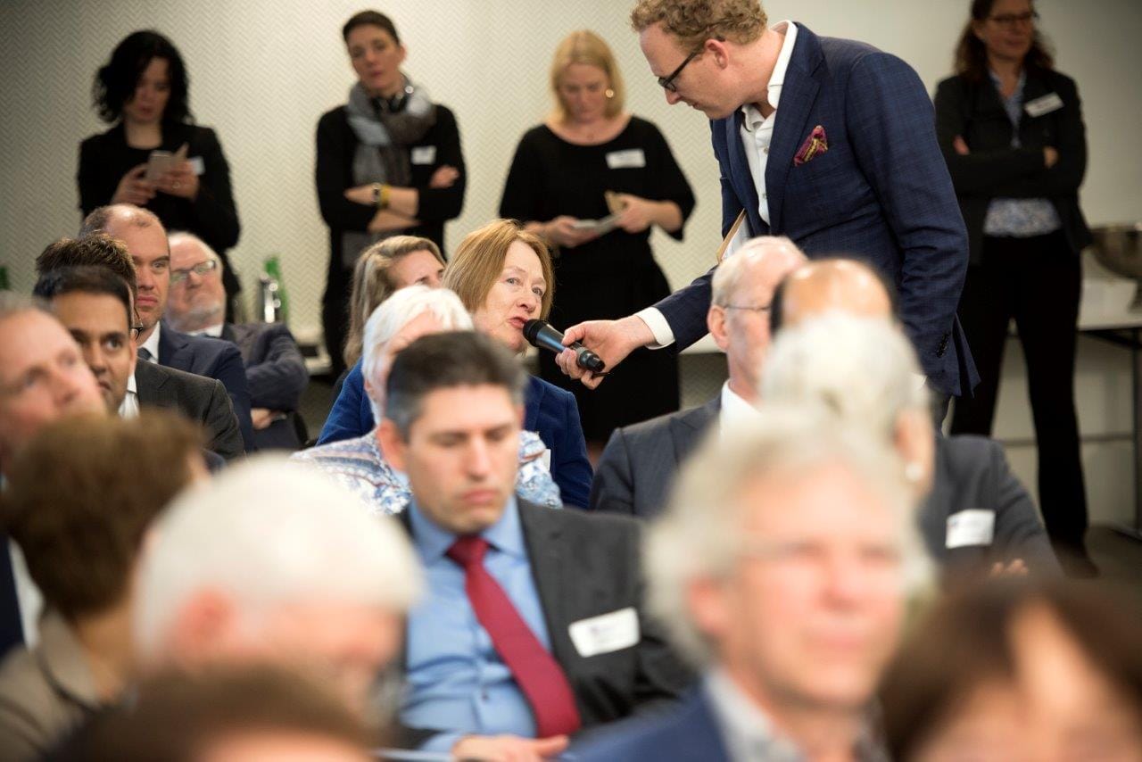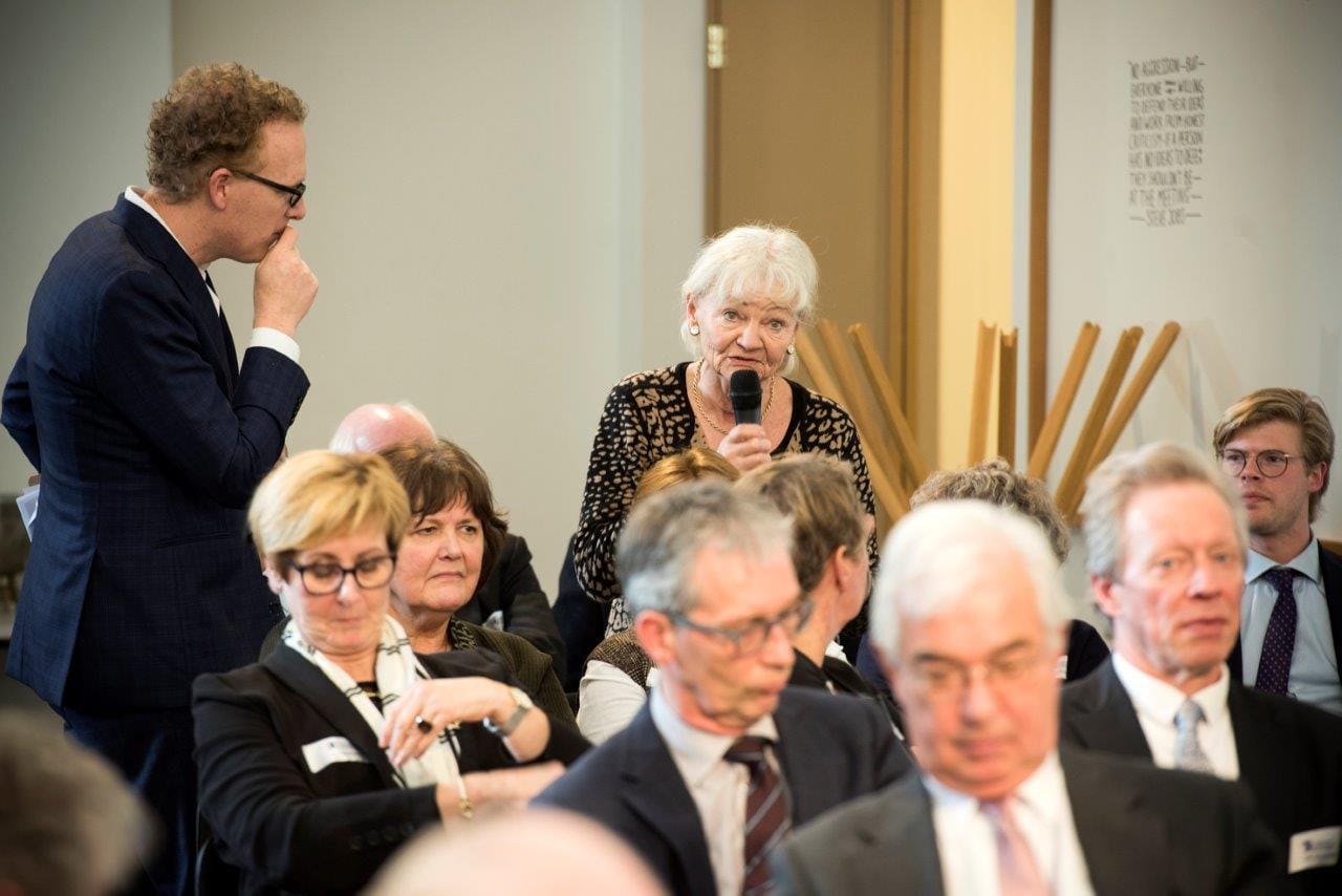 De Nederlandse Vereniging voor Rechtspraak vierde haar 95-jarig bestaan 8 maart met een blik vooruit. Daarom waren er in De Rode Olifant in Den Haag workshops over big data, social media en vitaliteit. Minister Dekker kwam de jubilaris feliciteren, oud-D66-boegbeeld Jan Terlouw was keynote-speaker. Fotograaf Chris van Houts – dol op jubilea − legde een deel van de 95 aanwezigen van links naar rechts vast. Benieuwd wie wie is? Bekijk de onderschriften op onze Facebookpagina.