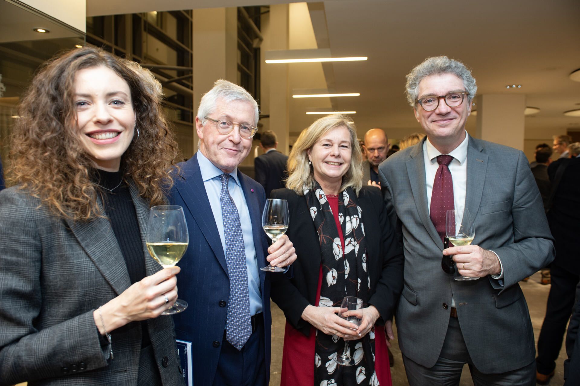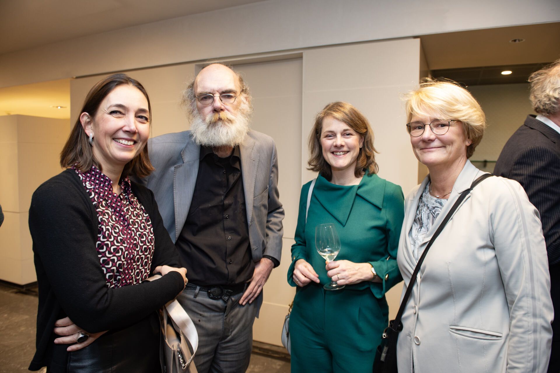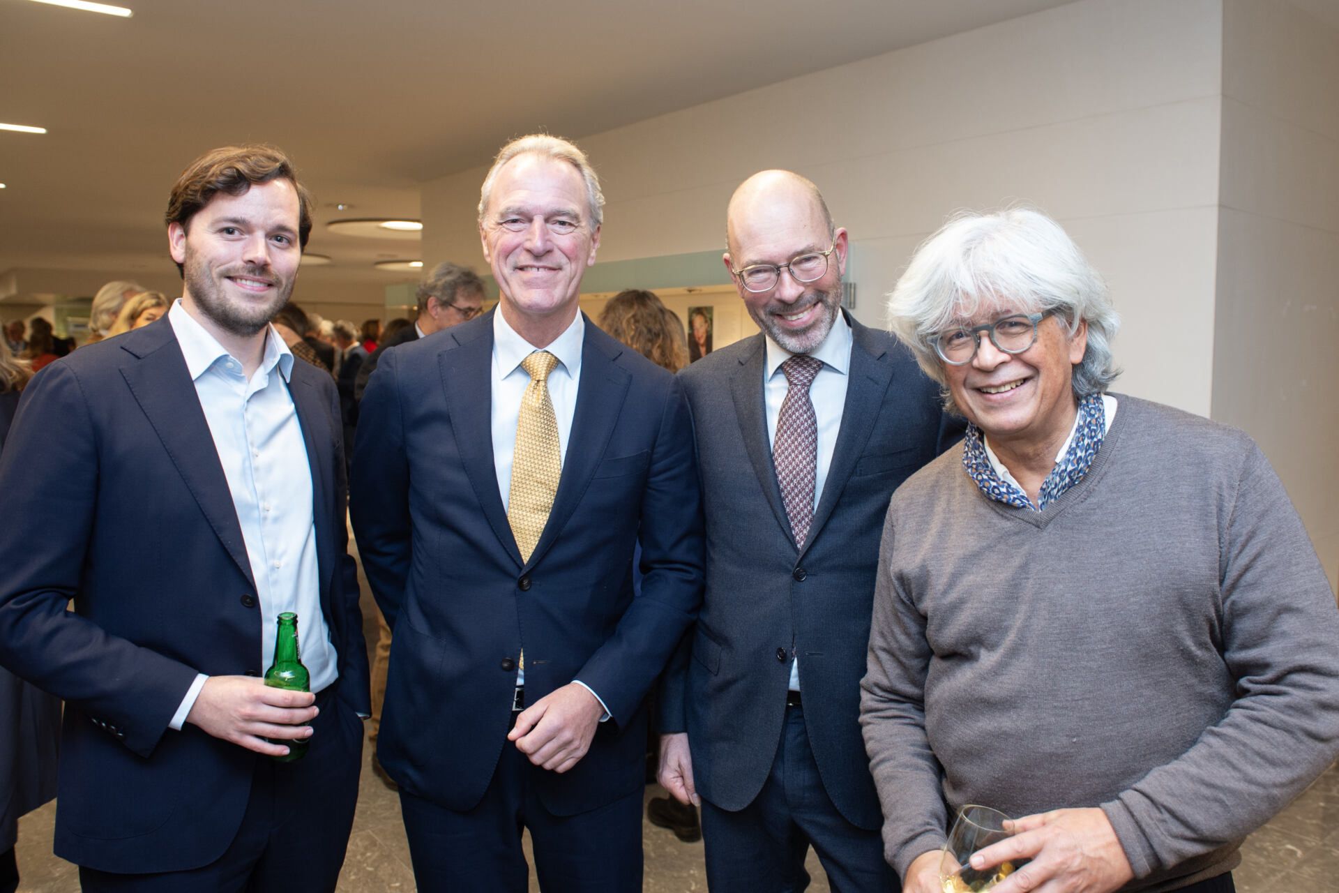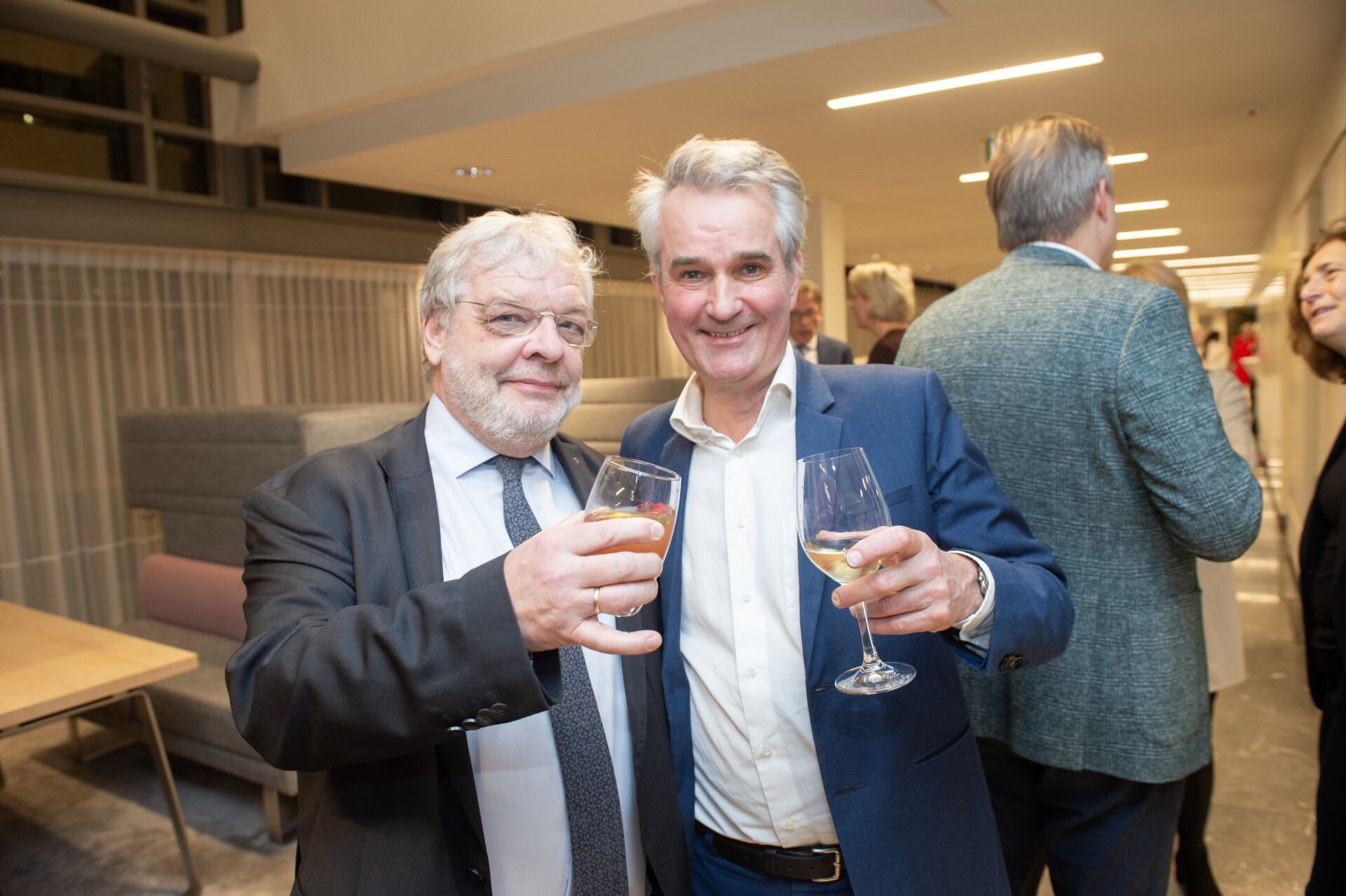 Na het serieuze deel van de middag kreeg Van Ettekoven uit handen van vice-president Thom de Graaf een liber amicorum en was het tijd voor een borrel. Fotograaf Geert Snoeijer legde de receptiegangers van links naar rechts vast.