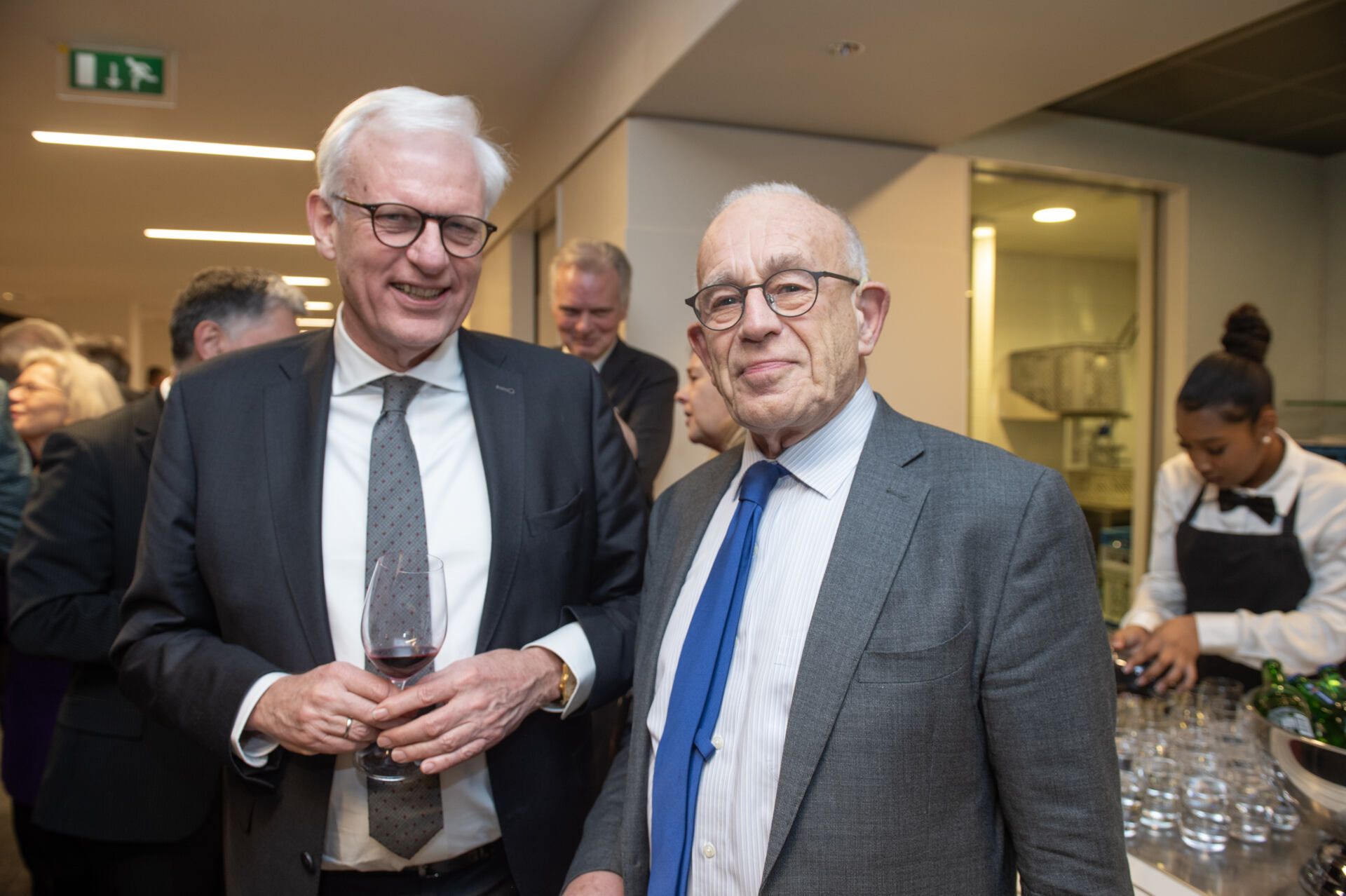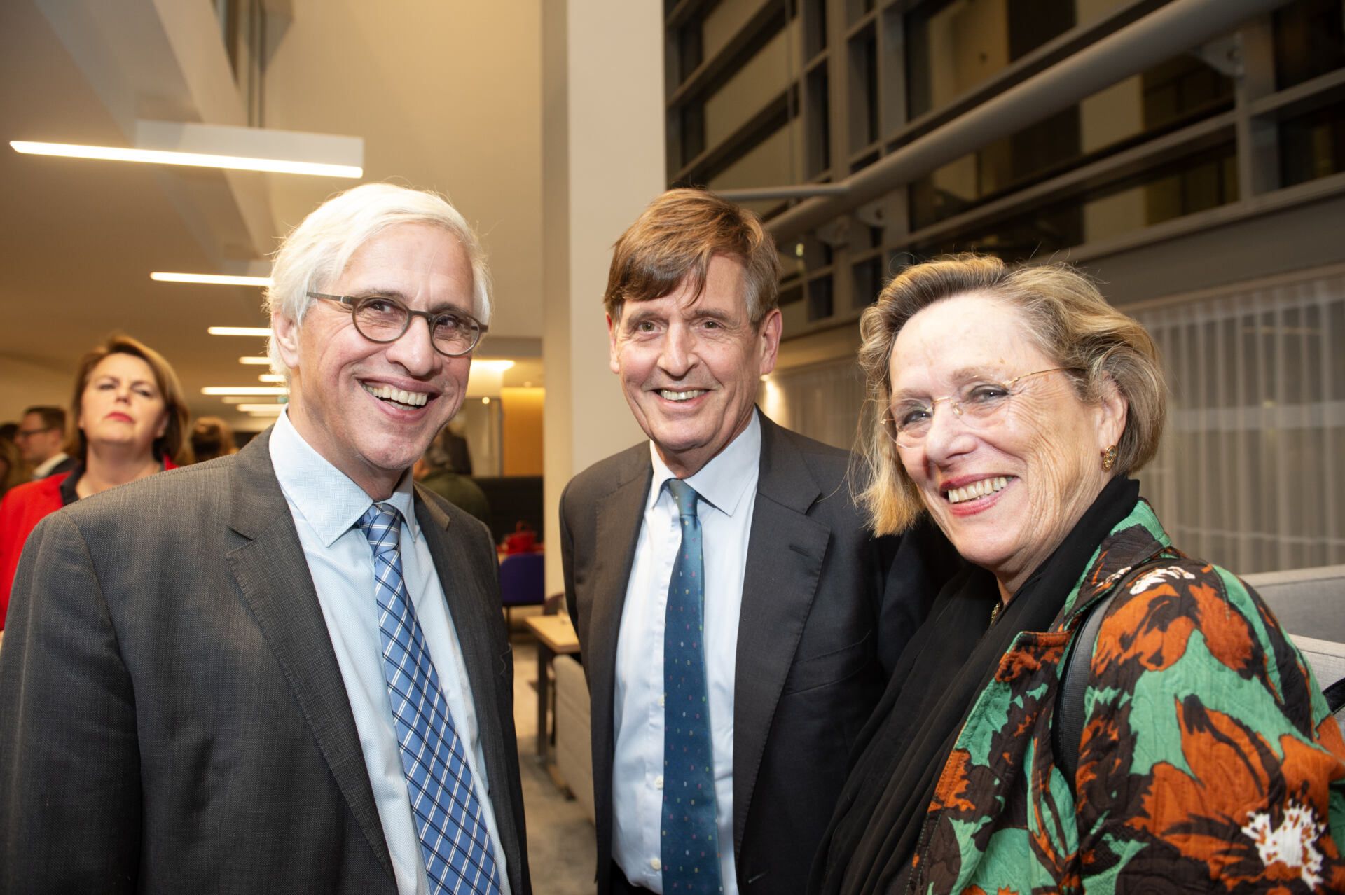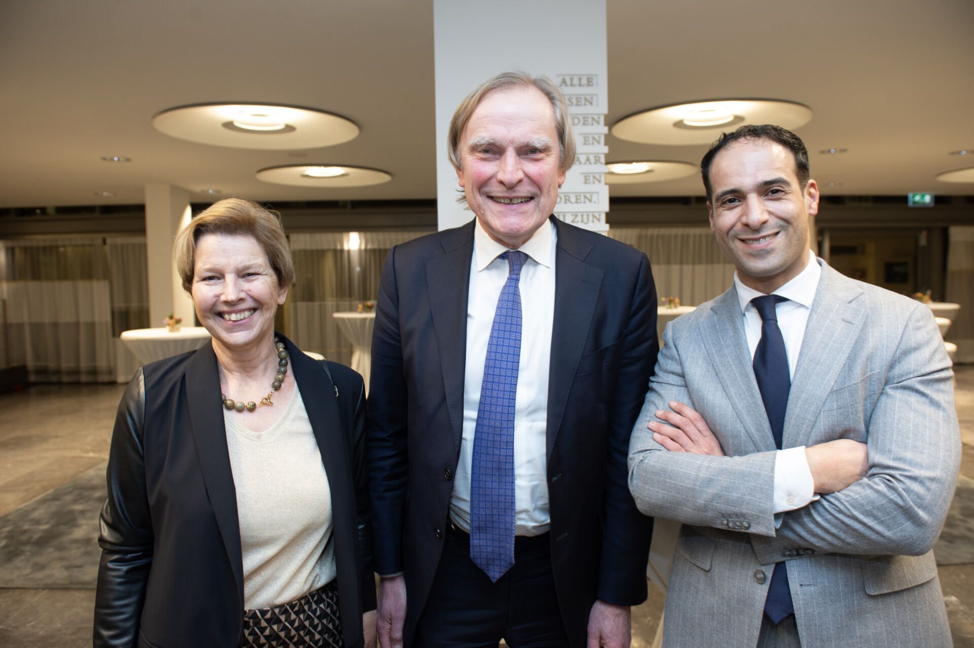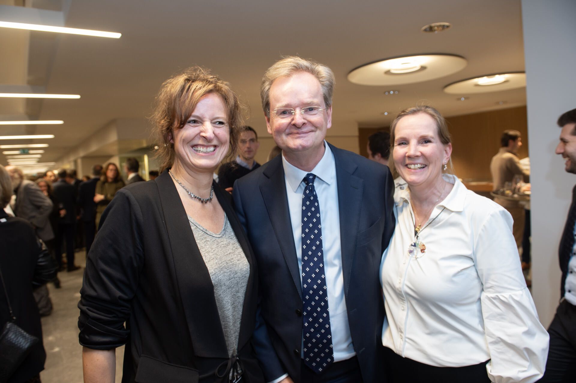 Na het serieuze deel van de middag kreeg Van Ettekoven uit handen van vice-president Thom de Graaf een liber amicorum en was het tijd voor een borrel. Fotograaf Geert Snoeijer legde de receptiegangers van links naar rechts vast.