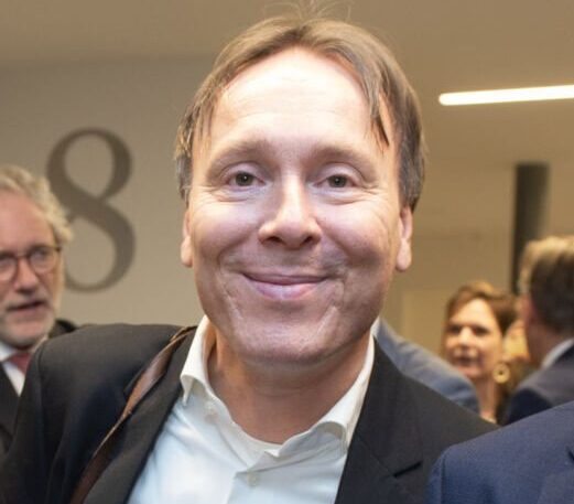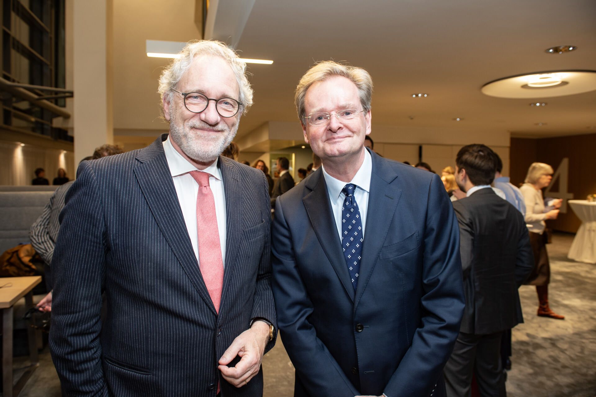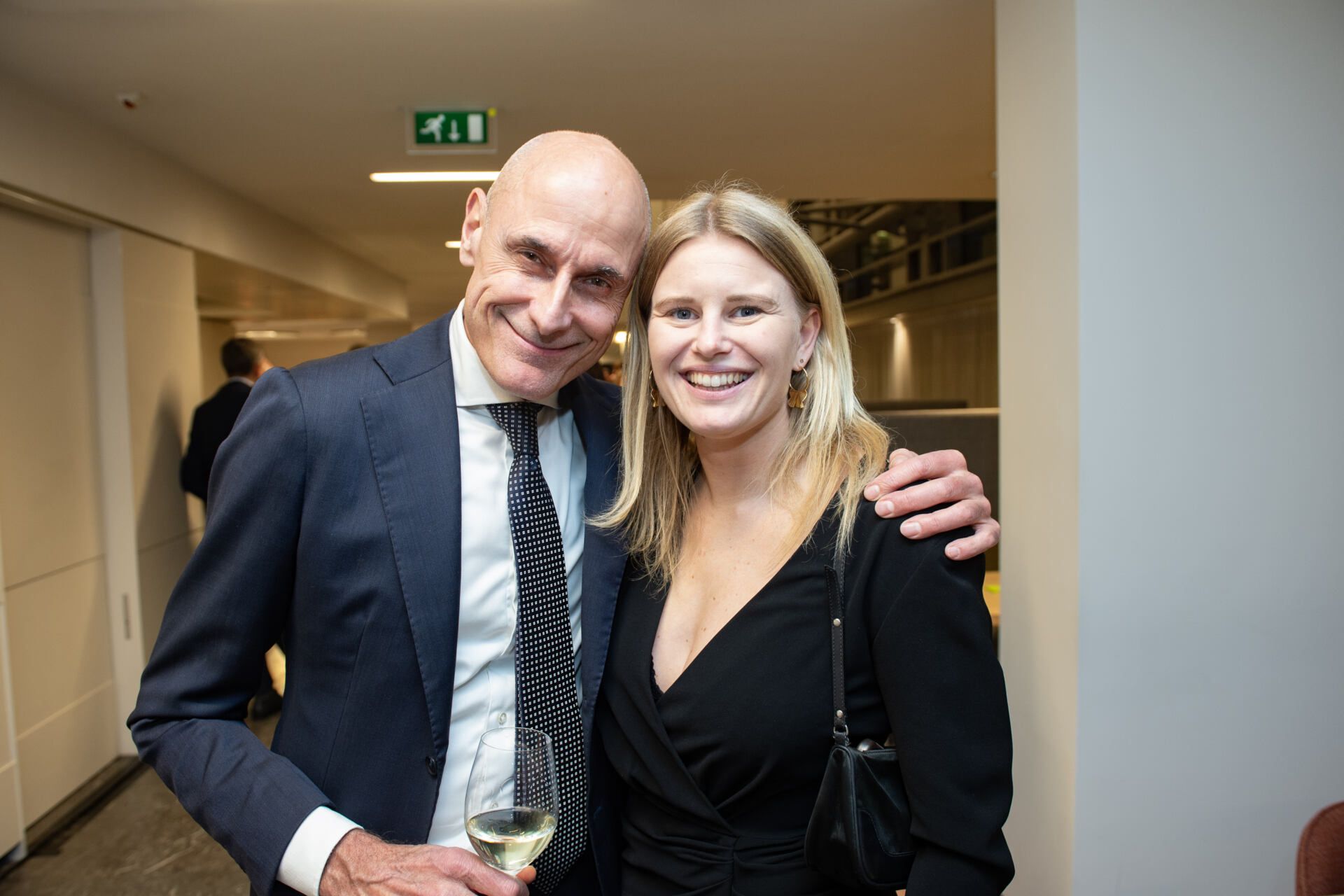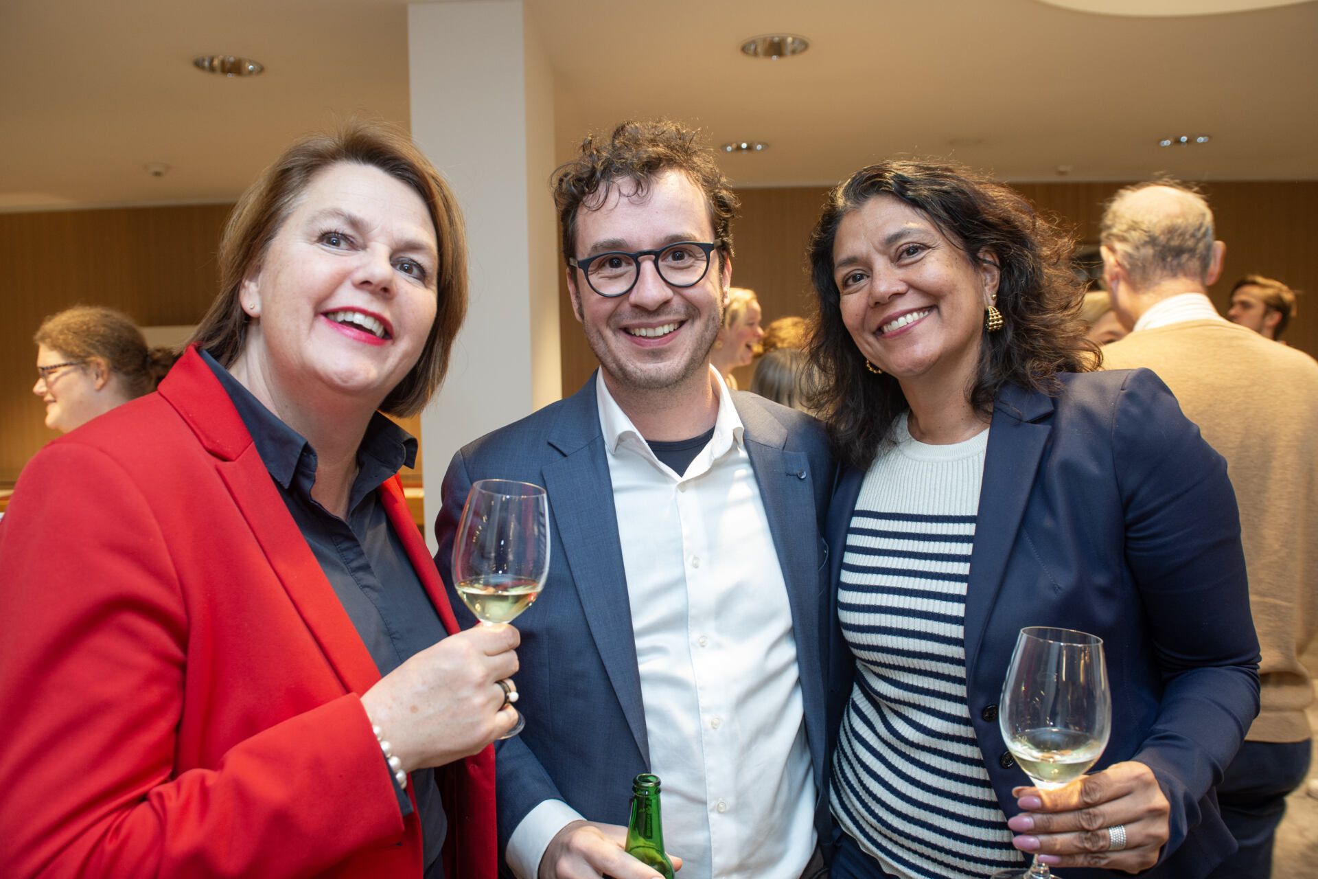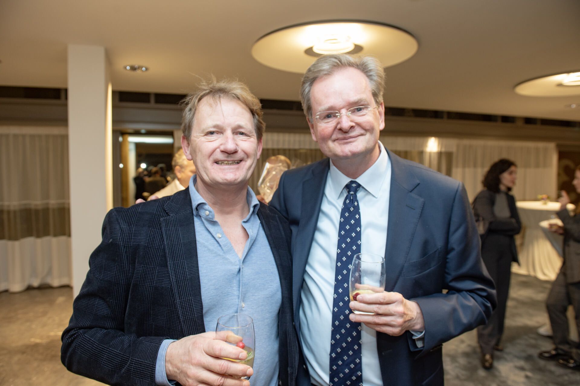 Na het serieuze deel van de middag kreeg Van Ettekoven uit handen van vice-president Thom de Graaf een liber amicorum en was het tijd voor een borrel. Fotograaf Geert Snoeijer legde de receptiegangers van links naar rechts vast.