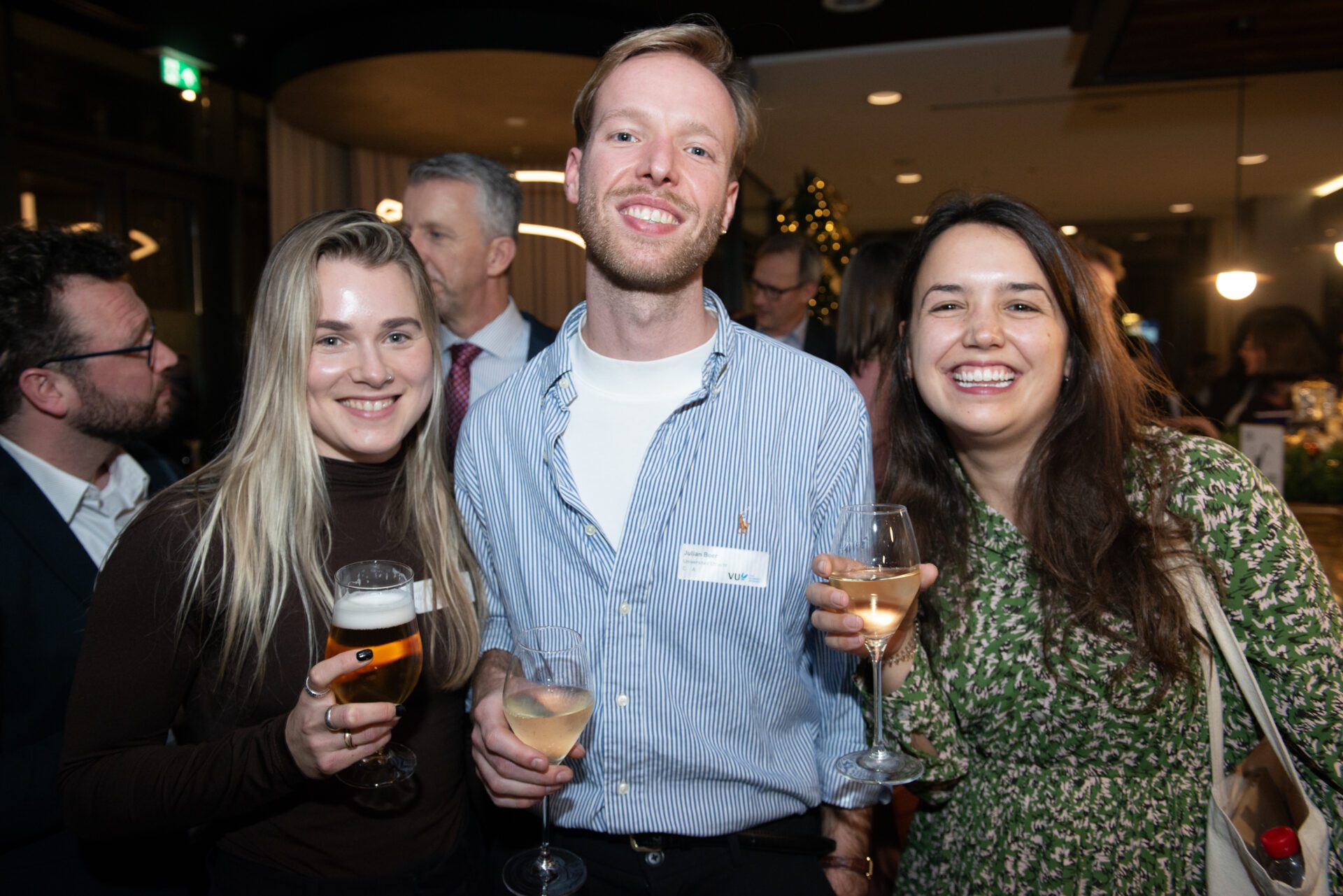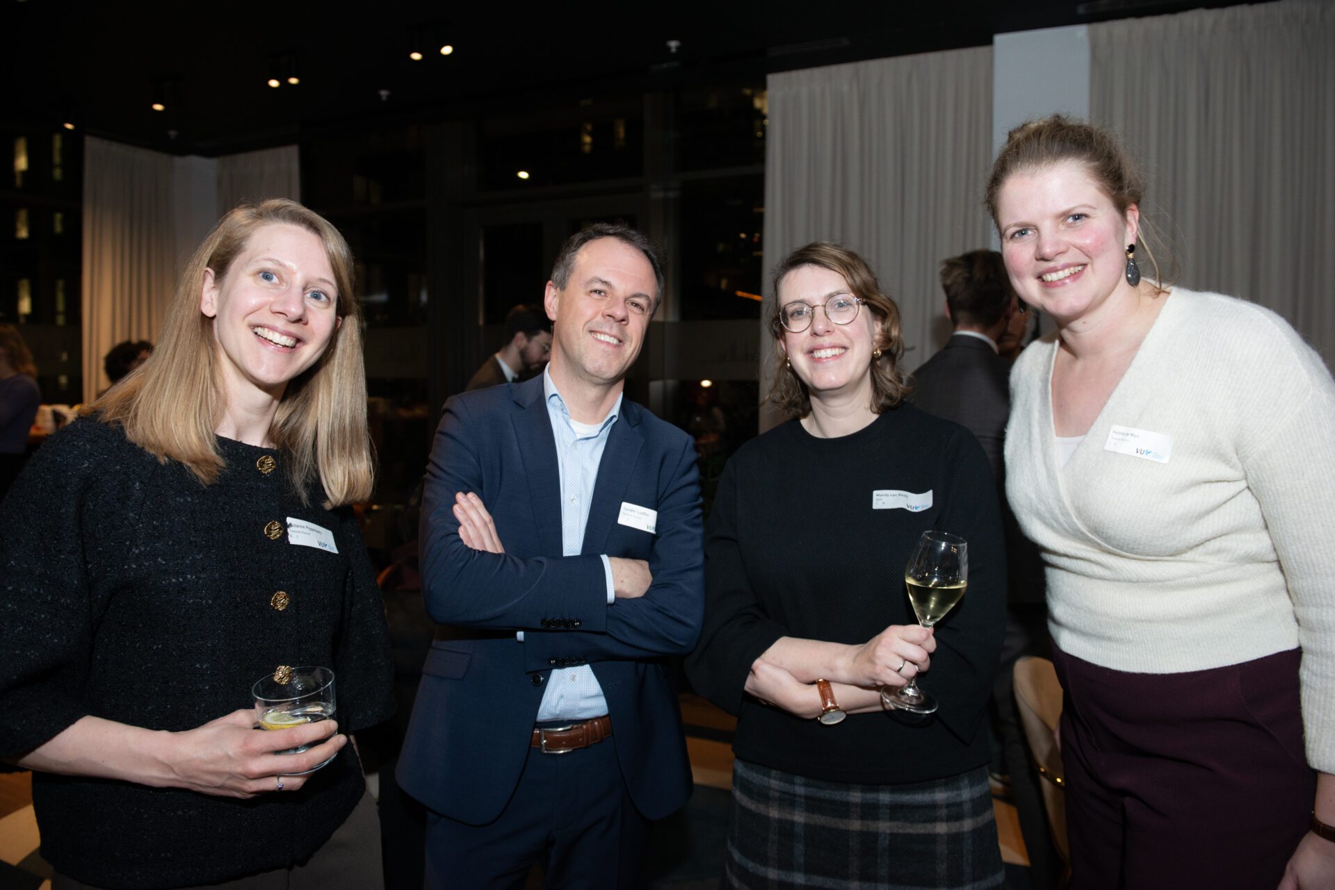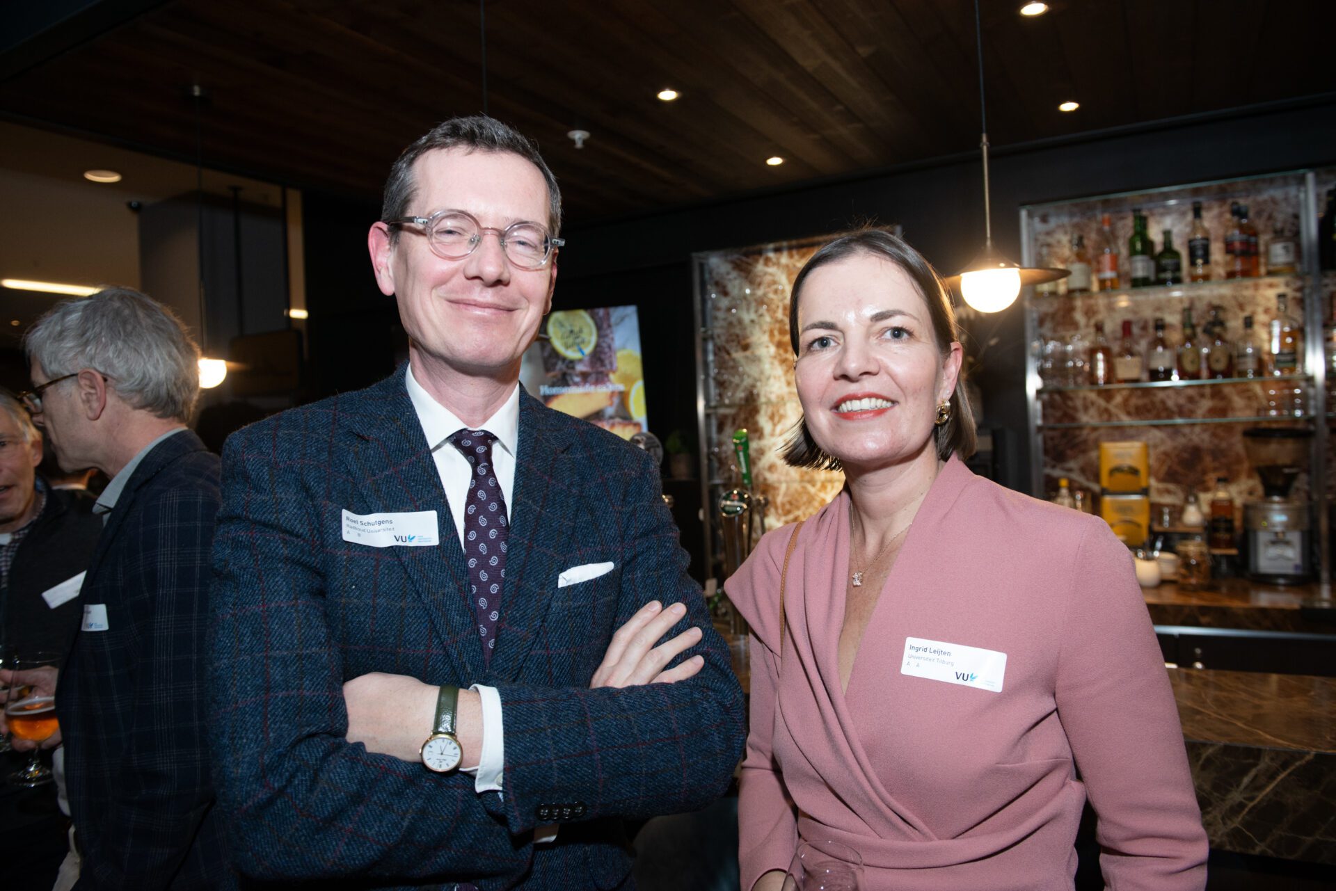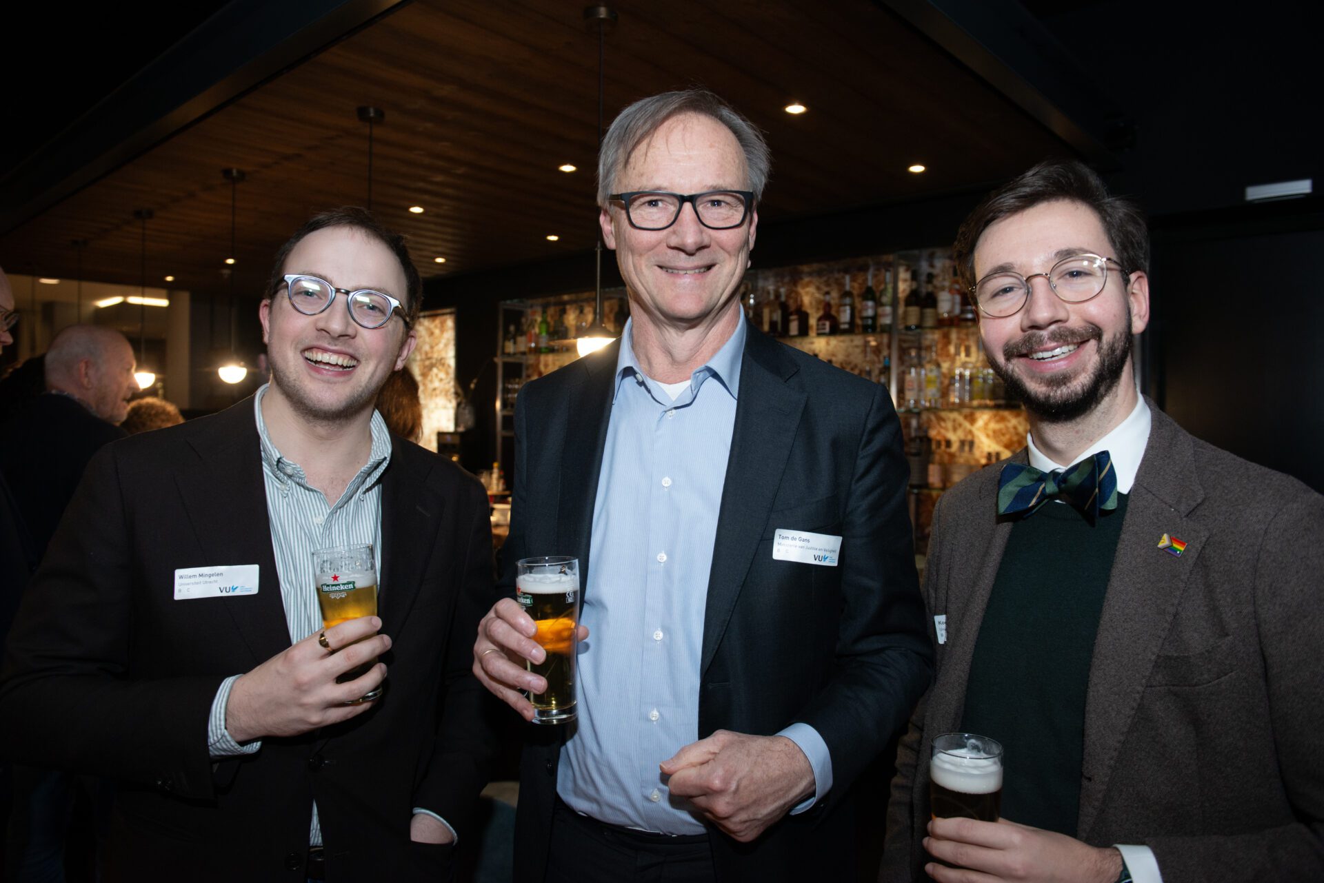 ‘De rechtsstaat in crisistijd’ was het thema van de Staatsrechtconferentie 2025, georganiseerd door de afdeling Staats- en bestuursrecht van de Vrije Universiteit. Zo’n beetje heel staatsrechtelijk was erop afgekomen. In het Crowne Plaza Hotel Amsterdam konden de aanwezigen 12 december eerst luisteren naar keynotes van de hoogleraren Marc Hertogh (UU/RUG) en Hanneke van Eijken (UU). Daarna waren er workshops over ‘Rechter in crisistijd’, ‘Wetgever in crisistijd’ en ‘Grondrechten in crisistijd’. Je zou er crisismoe van worden… Maar gelukkig was het na twee workshoprondes tijd voor de borrel. Mr.-fotograaf Geert Snoeijer was er ook en legde iedereen van links naar rechts vast.