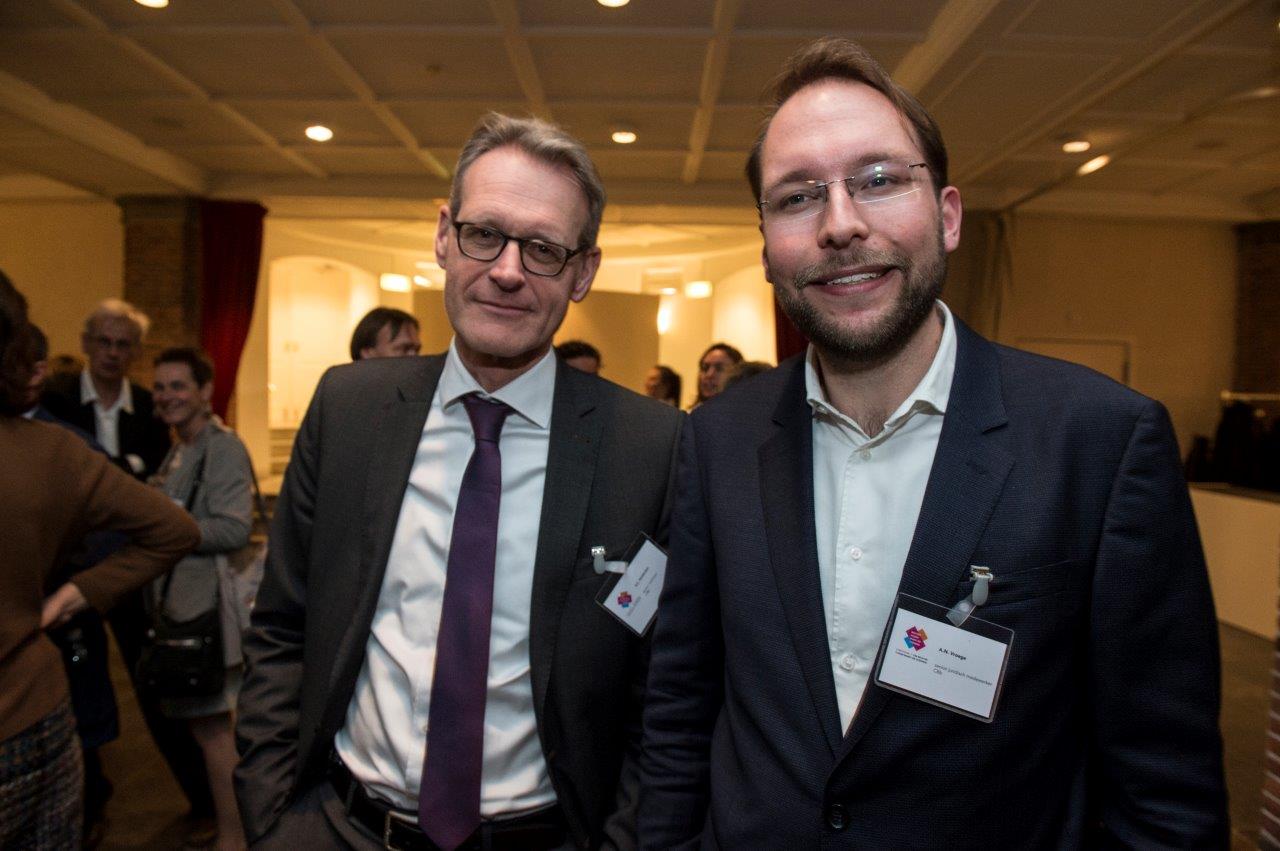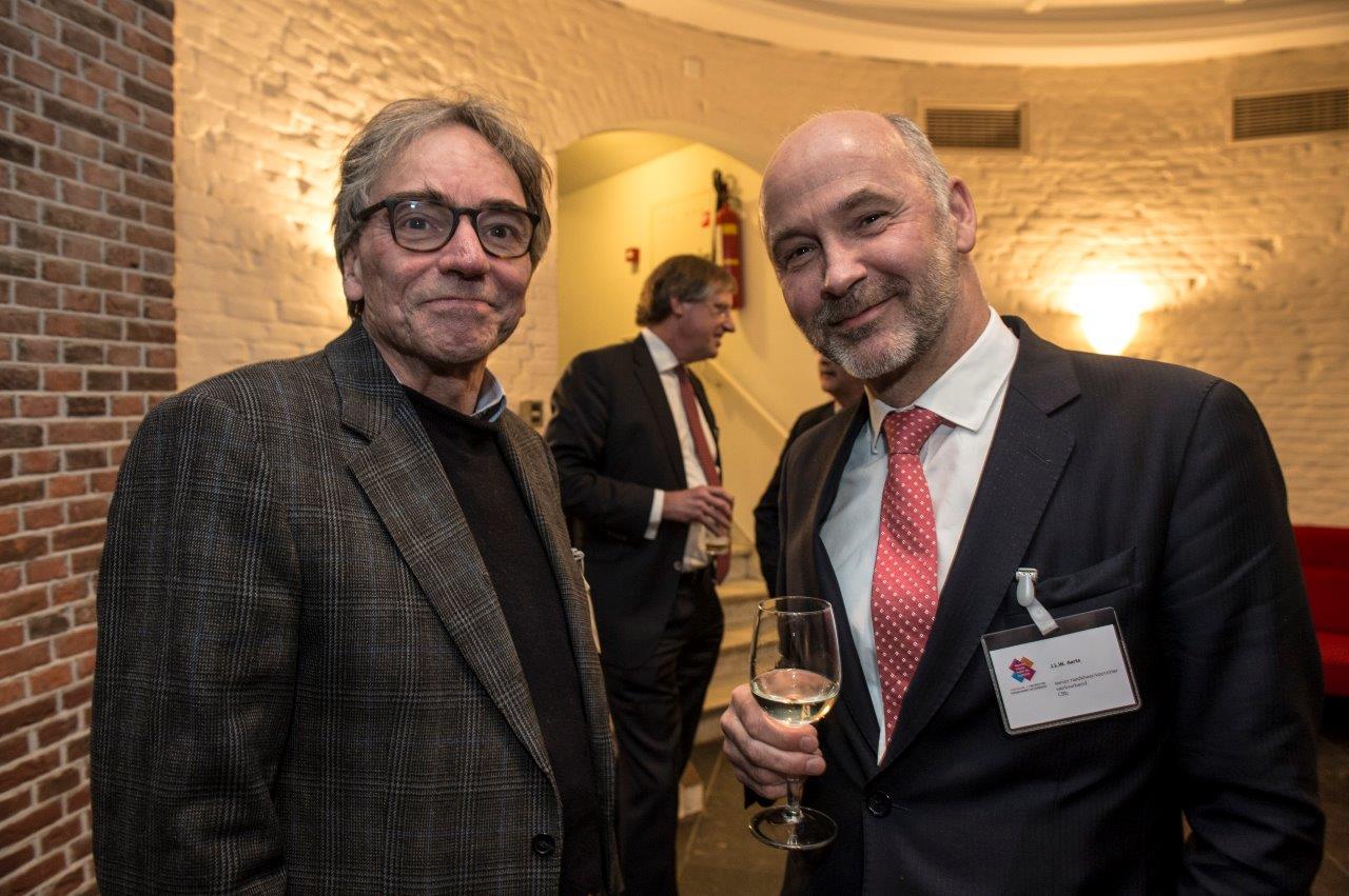 Jarenlang dreigde het College van Beroep voor het bedrijfsleven te worden opgeheven. Sinds het wetsvoorstel daartoe is ingetrokken, is het CBb volop bezig met wat president Theo Simons de ‘wederopbouw’ noemt. Daar hoort ook een symposium bij: 11 april verzamelden zich zo’n 200 juristen in de Nieuwe Kerk in Den Haag voor ‘CBb: rechter tussen markt en overheid’. Naast serieuze gastsprekers was er ook ruimte voor cabaretier Dolf Jansen en het jazzy Trio Peter Beets. Na afloop werd geborreld in de kelder van de kerk, waar fotograaf Geert Snoeijer iedereen van links naar rechts op de foto zette.