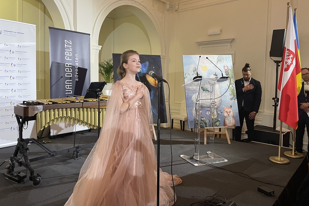 Hoogsteder kan nog even nadenken, eerst muziek. En wel van Oekraïense topmusici als violist Oleksii Semenenko en pianist Antonii Baryshevskyi. Maar de werkelijke ster van de avond is toch wel de gevluchte Veronika Morska, deelneemster aan het Junior Songfestival 2021. Zij opent met het Oekraïense volkslied en bezorgt het publiek een brok in de keel. Zelf lijkt de jeugdige zangeres niet onder de indruk. Nadat ze het podium heeft verlaten, springt ze in haar prinsessenjurk aan de hand van haar moeder speels op de trappen – zoals het een tienjarige betaamt. Daarna blijkt het moelijker de aandacht van het publiek vast te houden. Het pianospel wordt overvleugeld door geroezemoes van netwerkende heren-in-pak. Van der Werf grijpt in: “Als u wilt praten, vraag ik u naar de ruimtes beneden te gaan.” Wie durft?