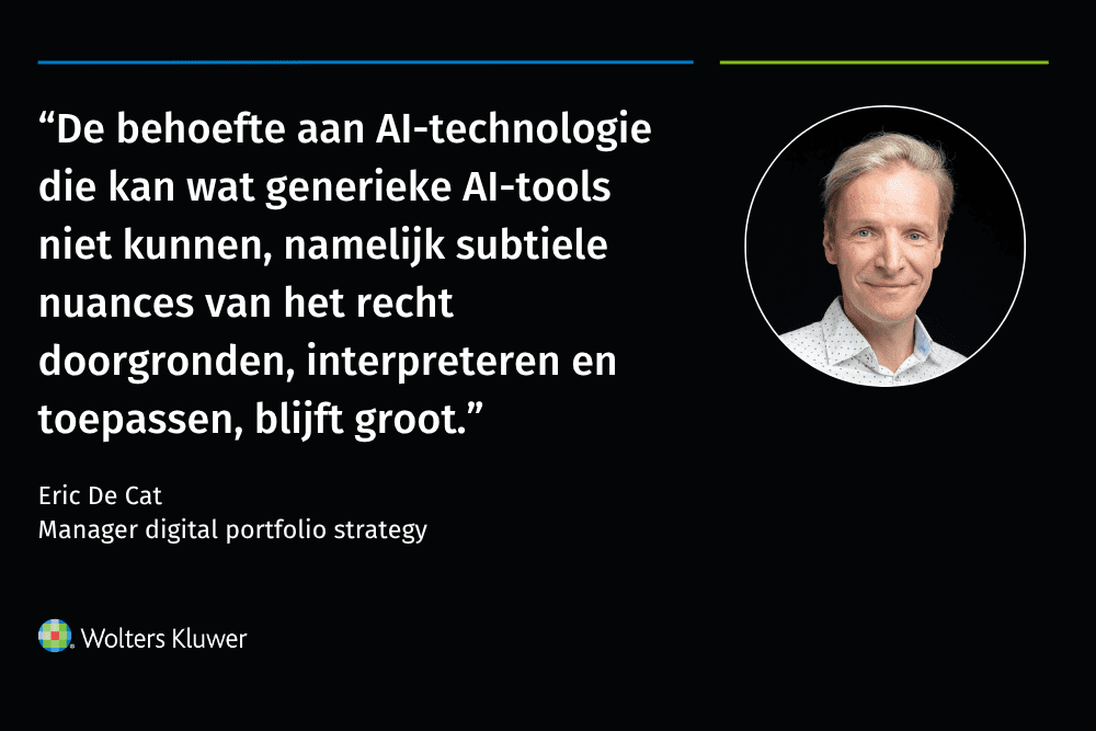 Wat juridische informatie onderscheidt, is de context: wetten en rechtspraak gelden binnen een bepaald tijdsbestek, hebben een specifieke plaats en de hiërarchie van rechtsbronnen en vragen om interpretatie. Het is dat complexe karakter van het recht dat de ontwikkeling van kwalitatieve GenAI voor de juridische en fiscale sector een uitdaging maakt. De behoefte aan AI-technologie die kan wat generieke AI-tools niet kunnen, namelijk subtiele nuances van het recht doorgronden, interpreteren en toepassen, blijft groot.