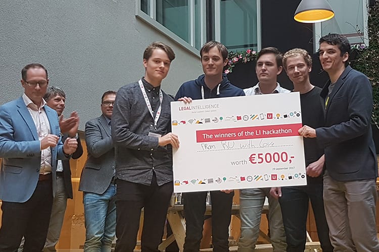 Afgelopen woensdag vond het startschot plaats van de hackathon, een initiatief van de leidende juridische zoekmachine Legal Intelligence. Vrijdagochtend om 8 uur vonden de presentaties plaats van de negen deelnemende teams. Na een kort juryberaad werd de hoofdprijs uitgereikt door Martin O’Malley, managing director van Wolters Kluwer Legal & Regulatory Nederland.