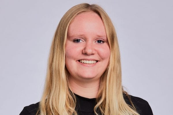 Student-stagiair van de week Rachel-Roxelane Speelman (Greenberg Traurig) worstelt met haar nietmachine 4 mei 2021 redactie Mr.